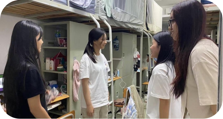 在走访宿舍慰问活动中,师生党员和入党积极分子分组走访了海安、海景、海韵、海趣等宿舍区,向留校学生表达了亲切的问候。支部成员与同学们进行了亲切的交谈,了解他们的假期生活和学习情况,还特别强调了校园安全的重要性。与此同时,支部成员仔细检查学生宿舍的设施设备和卫生状况,确保留校学生良好的生活环境。此外,活动中还特别慰问了新生,与他们分享了学习生活经验,指导他们了解专业、规划学业,以期助力新生们顺利启航大学生活。
