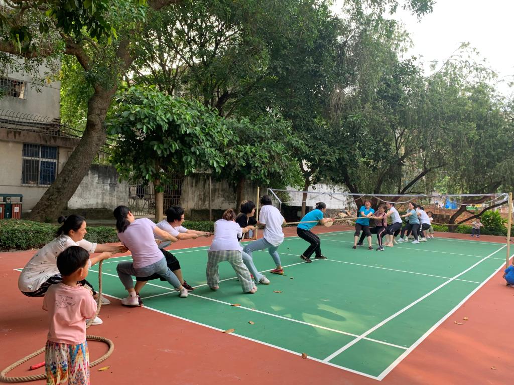 4月29日下午,海洋工程学院女教职工齐聚一堂,于海滨校区礼堂上面的小羽毛球场举行“三八节”暨“母亲节”室外健身娱乐活动。活动内容有:互踩汽球、对打气排球以及拔河。