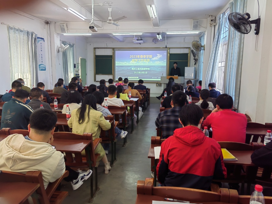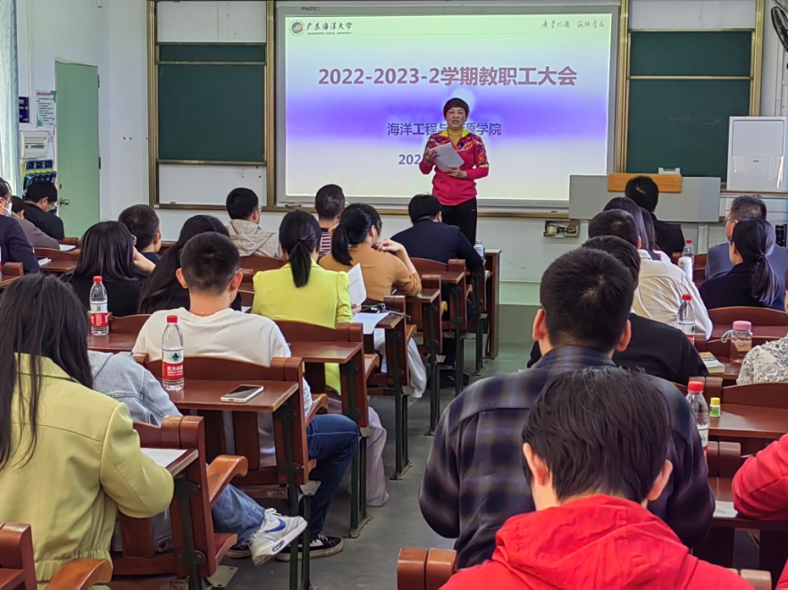 2023年3月1日下午,williamhill中文在海滨校区教学楼310教室召开新学期全体教职工大会,部署学院新学期工作,并对做好本科教育教学审核评估工作进行全面部署和全员动员。邓伟主持会议,学院全体教职工参加会议。