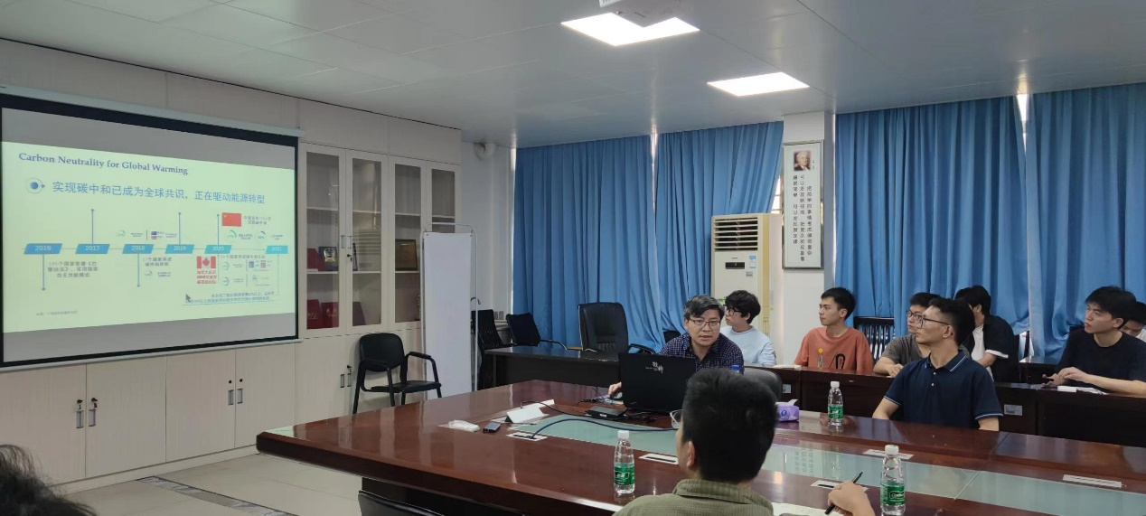 徐春保教授作了题为《Advanced Biorefinery- Towards Net-Zero Carbon Emission & Bio-/Hydrogen- economy》的学术报告,围绕生物质资源在钢铁行业和氢气生产中的研究与应用,重点介绍了生物质冶金技术与应用、生物质基材料合成技术以及生物质超临界水热气化产氢技术方面的研究工作。此外,还介绍了先进生物炼制技术(生产绿色氢气、可持续航空燃料和高值化学品)和先进储氢材料(液氢载体氨和甲酸)方面的研究进展。报告结束后,针对生物质冶金技术应用瓶颈、海藻生物质资源高效转化利用技术、生物质产氢技术及储氢材料开发等技术难题,与会师生与徐春保教授进行了深入的探讨交流。