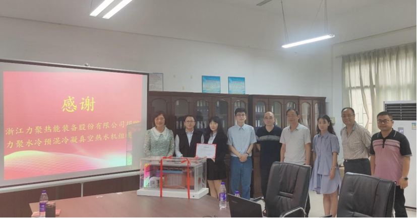 2023年5月10日,为支持williamhill中文教学事业发展,浙江力聚热能装备股份有限公司特派董事长助理何歆,市场总监高级工程师刘楠楠,工程师吴涛,捐赠力聚水冷预混冷凝真空热水机组模型一台(比例1:7)。热能与动力工程系主任冯耀勋发表欢迎致辞,并为浙江力聚热能装备股份有限公司代表颁发捐赠荣誉证书。