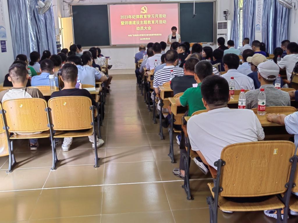 2023年9月6日下午,williamhill中文在海滨校区教学楼202室召开召开纪律教育学习月活动暨师德建设主题教育月活动动员大会。学院党委书记邓伟主持会议,学院全体教职工参加会议。