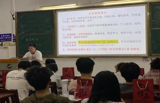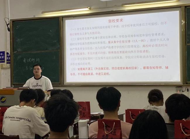 辅导员梁震川老师强调了暑期留校安全的重要性,并呼吁大家增强安全意识,严格遵守校规校纪。