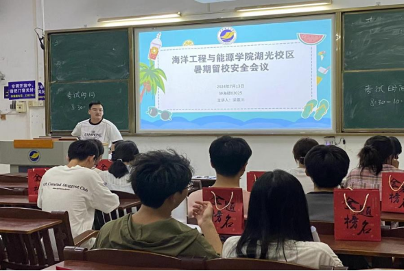 最后,最后梁震川老师再次强调了暑期留校安全的重要性,并希望大家在暑期期间不仅要注意自身安全,还要积极配合学校的各项安全管理工作,共同营造一个安全、和谐的校园环境。