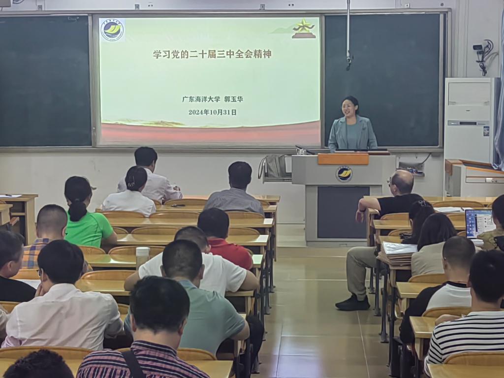郭玉华以“学习党的二十届三中全会精神,全面深化改革、推进中国式现代化”为主题为大家作宣讲报告,围绕全面深化改革的必要性、全面深化改革的迫切性、全面深化改革必须坚持的六大原则、全面深化改革的重大举措四个方面对党的二十届三中全会精神做了全面阐释,并聚焦学校党委“1918”工作安排,履职尽责,担当作为,推动学校和学院高质量发展提出了具体的学习贯彻措施。郭玉华旁征博引、深入浅出的讲解,激起了全院教职员工学习贯彻党的二十届三中全会精神的热情。