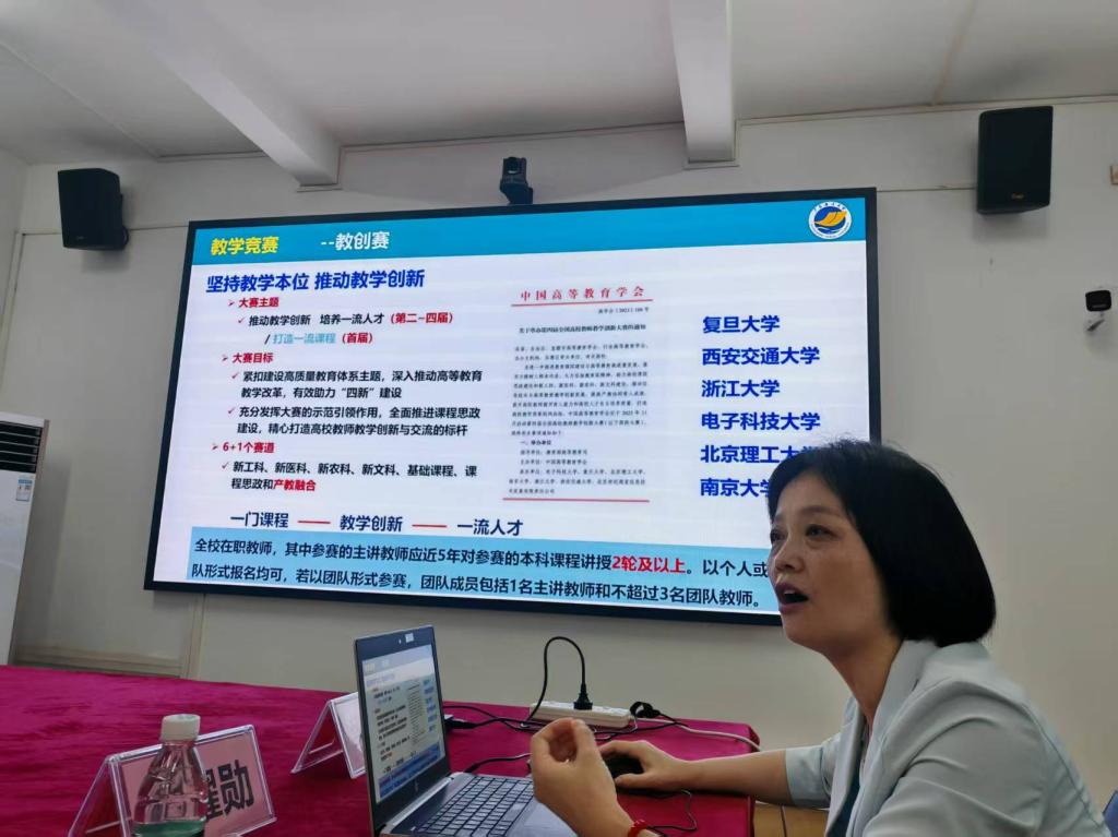 首先樊海红副教授结合自身从教的经历,从“学无常师、教有新道”以学生为中心的教学探索为主题,从教学竞赛、课程建设、课堂教学、课程评价四个方面入手展开,体现出“以学生为中心”的教学理念和“孜孜以求”的教学态度,就如何开展课堂互动、推动教学创新、加强课程思政等方面进行了详细的分享。
