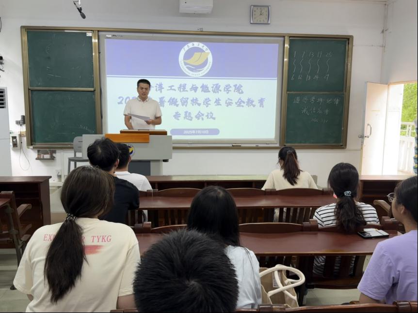 2025年7月10日下午3点,williamhill中文在海滨校区教学楼218教室召开2025年暑假留校学生安全教育主题会议。本次会议由分管辅导员韩弘峰老师主持,全体留校复习考研学生参会。