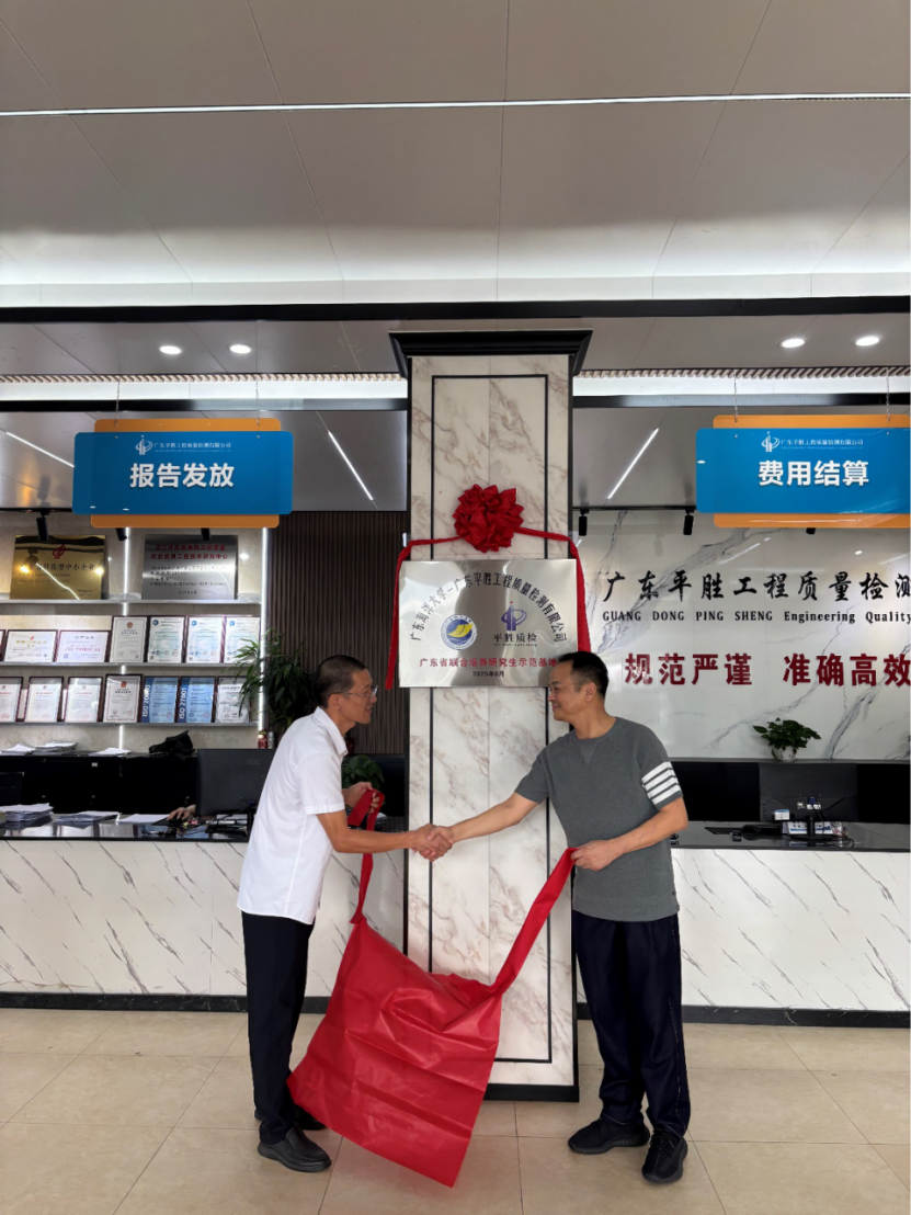 为了促进产教研校企合作,深化研究生实践培养内涵,提升研究生实习实践质量,我校与广东平胜工程质量检测有限公司依托我校土木水利专业硕士学位点,今年6月立项广东省联合培养研究生示范基地。2025年8月25日在广东平胜工程质量检测有限公司举行基地挂牌仪式。学校研究生院院长叶国栋、williamhill中文院长徐青、基地负责人吴光林及导师代表,广东平胜工程质量检测有限公司董事长杨顺芳、总经理黄小芳、技术总监刘立创及主要管理和技术负责人代表共同出席仪式。活动由刘立创主持。