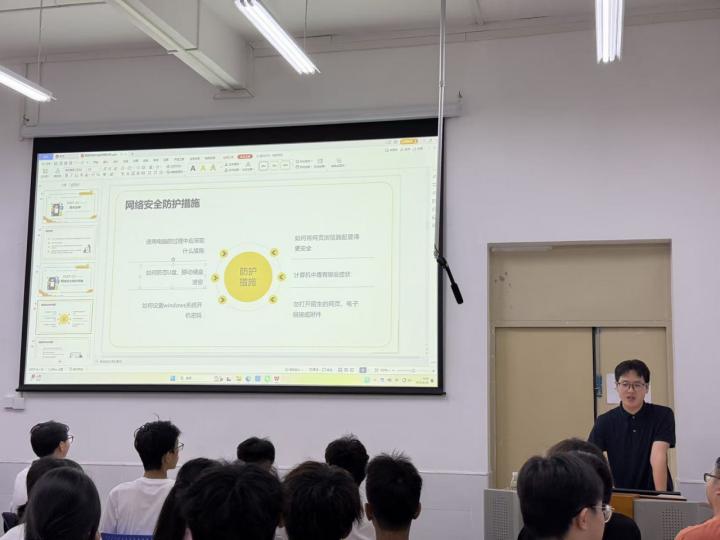 2025年10月13日,李国斌老师将国防教育紧密结合国家网络安全宣传周开展了“e路安全,e心国防”教育活动,活动聚焦网络空间这一“第五疆域”,深入阐释了网络安全的整体性、动态性等主要特征,使新生认识到网络安全是新时代国防的重要组成部分。活动通过系统普及《中华人民共和国网络安全法》等法律法规知识,明确了个人在网络空间中的权利、义务与行为底线。在此基础上,活动重点讲解了包括密码安全、信息甄别、电信诈骗防范在内的多项实用防护措施,引导学生提升实操技能,将维护国家安全的使命从理念认知转化为日常生活中的自觉防护行动,有效筑牢了校园网络安全的集体防线。