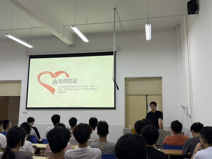 2025年10月17日,李国斌老师立足新生实际生活场景,系统性地围绕人身、交通、宿舍等重点领域给新生开展了“平安海大,警钟长鸣”安全教育活动。教育内容聚焦实效,通过剖析真实案例,详细讲解了防范电信网络诈骗、识别并远离各类安全隐患的具体方法,如何排查消防隐患、正确使用电器及掌握火场逃生技能,强化了“防盗”意识与措施。活动旨在将“安全第一”的思想深植于新生心中,切实提升其风险辨识、安全防护与应急自救的实操能力,为共同构建平安、和谐的校园环境奠定了坚实基础。