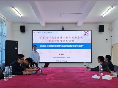 随后,学院教师周忠兵博士、王晓亮博士、梁正博士和富经纬博士也分别作了精彩的学术报告。周忠兵博士介绍了《振荡流与双圆柱作用的流动模式和稳定性分析》,揭示了新的流动模式及其对称性破缺机理。王晓亮博士分享了《膜袋砂围堰稳定性研究》成果,包括破坏机理、稳定性评估方法及工程加固技术。富经纬博士和梁正博士则分别围绕微藻生物固碳技术和质子交换膜燃料电池优化等能源领域前沿课题进行了深入探讨。这些报告不仅展示了教师团队的科研实力,也为研究生提供了学术示范,帮助研究生把握学科前沿动向。